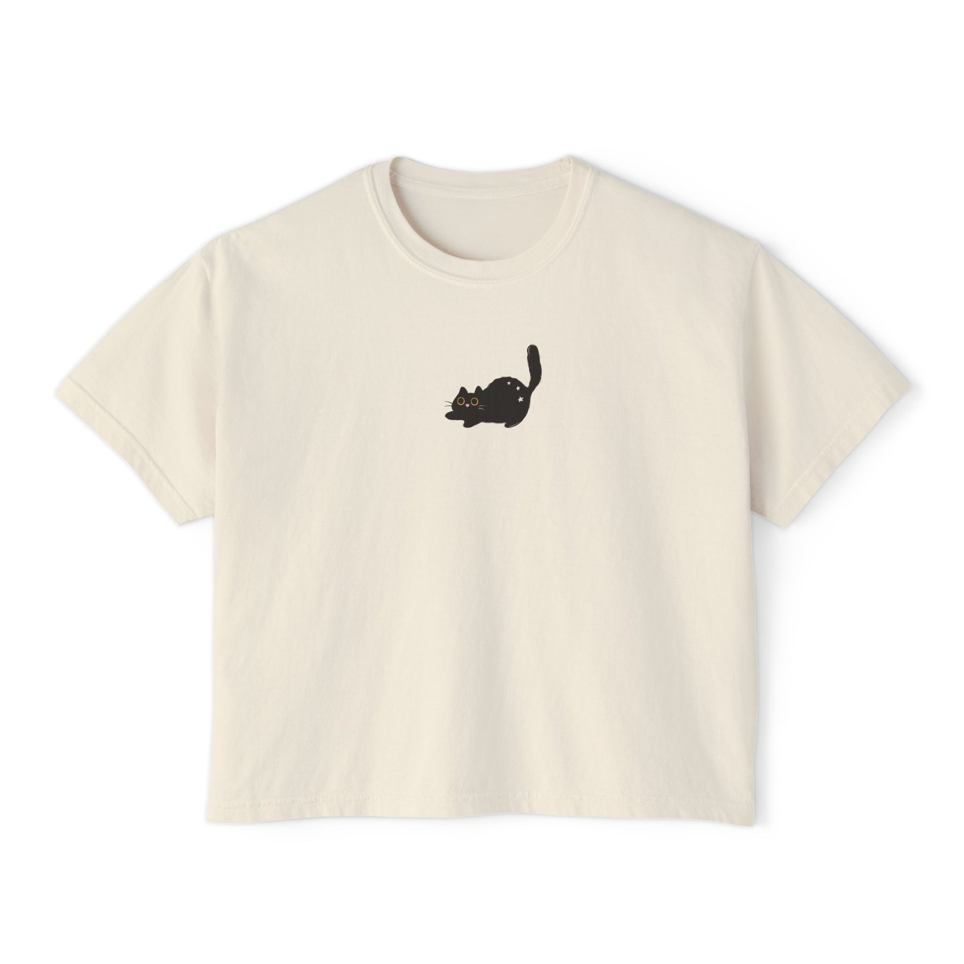 This halloween-themed cute cat ghost tee is perfect for those looking for a fun and spooky addition to their wardrobe. The boxy fit adds a trendy touch, and the pigment dye colors give it a vintage look. Ideal for Halloween enthusiasts and cat lovers.